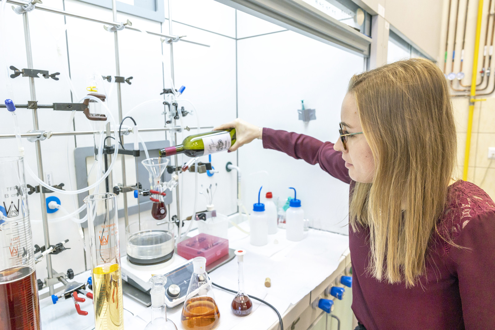 "The atom transfer radical polymerization (ATRP) technique we use in our research was invented and described in 1994 by Prof. Krzysztof Matyjaszewski, and has been developing rapidly for almost thirty years. In the laboratory of Prof. P. Chmielarz's research group, we are working on improving this method, developing new variants and using it to synthesize polymers with well-defined properties and high application potential, including in implantology or the coatings industry. Faced with the challenge of selecting a suitable solvent for the synthesis of hydrophobic compounds, inspired by the principles of green chemistry, we decided to carry out polymerization using an unconventional solvent such as wine," - says M. Flejszar, MSc.