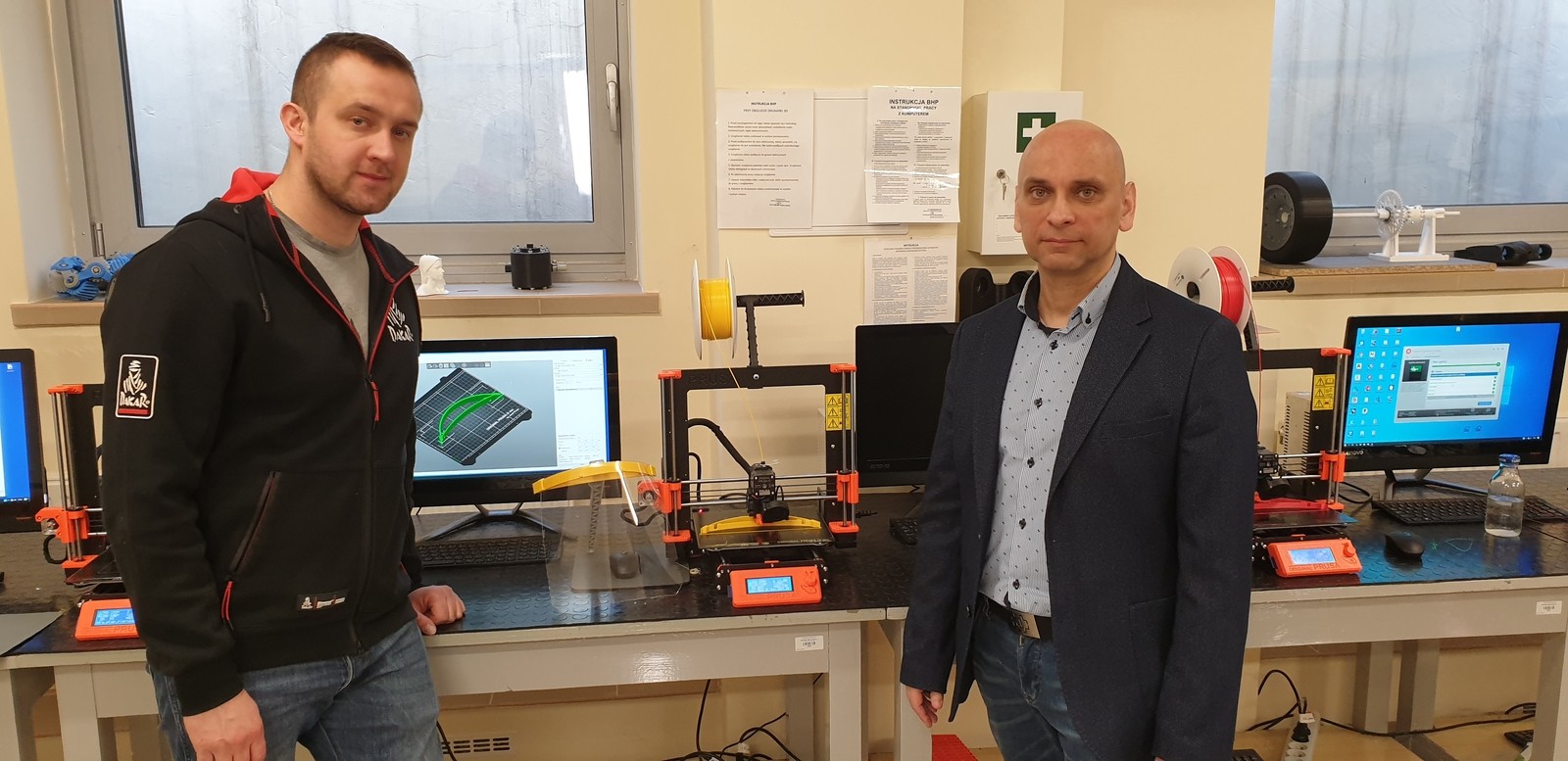 Prace nad projektem rozpoczęliśmy już w piątek, analizując dostępne na rynku i w sieci konstrukcje. Zależy nam również na szybkości wykonania uchwytu przyłbicy, tak aby podczas jednego procesu wydruku 3D wyprodukować jak najwięcej elementów, które są obecnie bardzo potrzebne – powiedział koordynator projektu dr inż. Łukasz Przeszłowski.