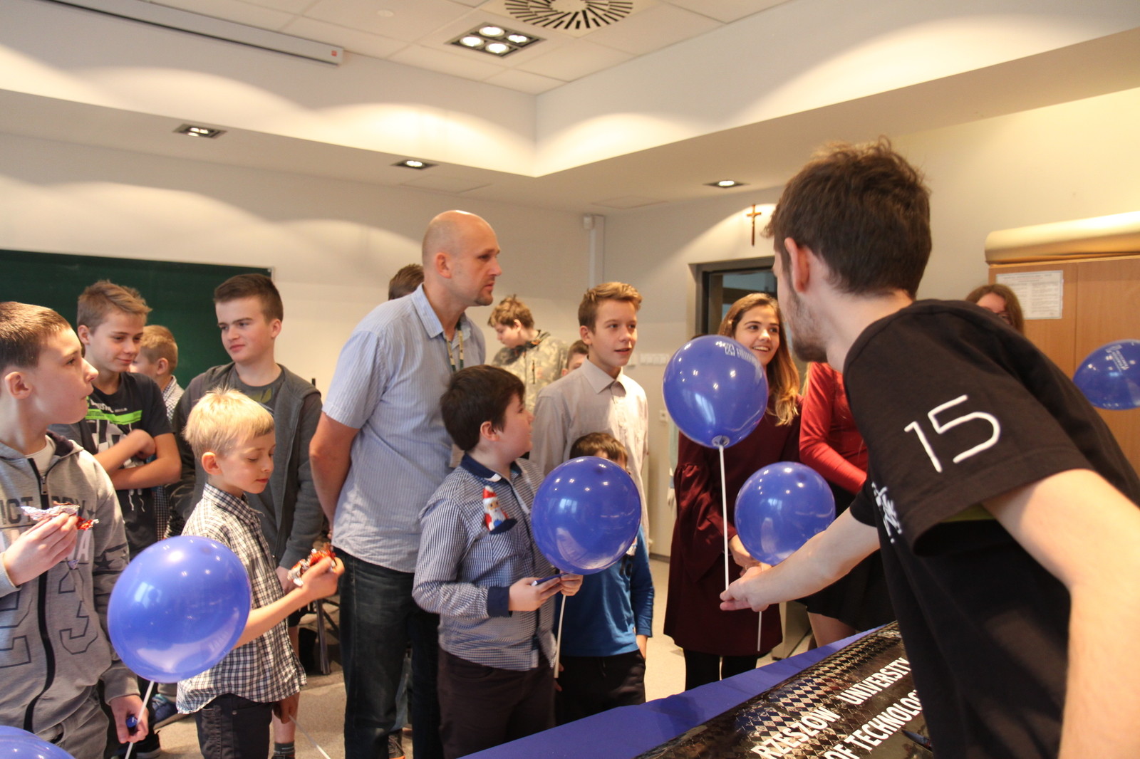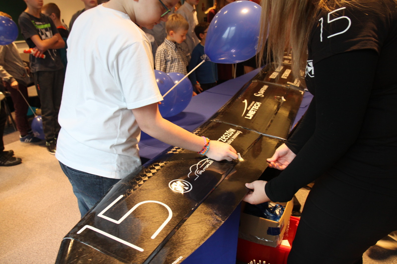 Jesteśmy w szpitalu już po raz drugi, w tym roku pokazujemy modele samolotów z zawodów SAE Aero Design 2016 i z Air Cargo Challenge w Zagrzebiu. Zainteresowanie ze strony dzieci jest duże, najczęściej pytają o to dlaczego w modelu znajdują się piłeczki. Są one imitacją pasażerów siedzących w prawdziwym samolocie – mówi Aleksandra Pasich studentka II roku kierunku Lotnictwo i Kosmonautyka na Wydziale Budowy Maszyn i Lotnictwa, należąca do koła EUROAVIA Rzeszów.