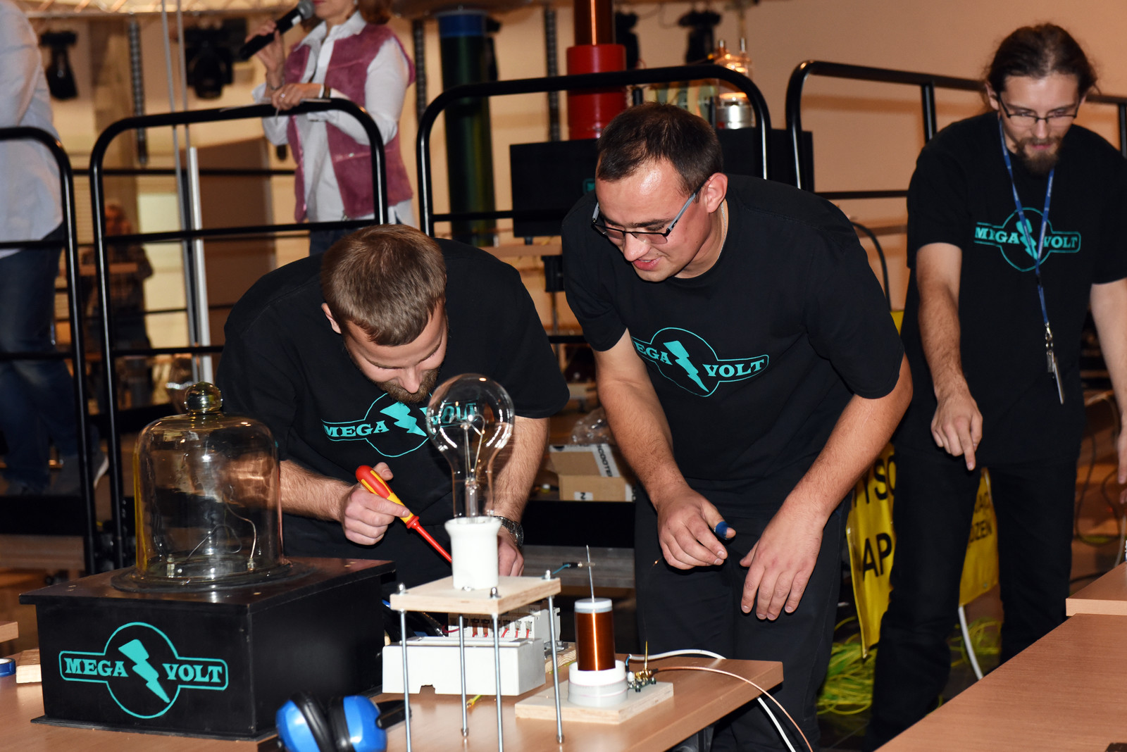 Popularną atrakcją Nocnych Spotkań z Nauką był także „teatr wysokich napięć”, wydarzenie zorganizowane przez firmę Polimedia, partnera Dni Otwartych Politechniki Rzeszowskiej, która współpracuje z uczelnią w ramach Politechniki Dziecięcej. Firma Polimedia przygotowała m.in. spektakl z wykorzystaniem jednych z największych w swoich klasach transformatorów Tesli. Współorganizatorem wydarzenia było Studenckie Koło Naukowe Elektryków „MegaVolt”. Zaprezentowane zostały urządzenia wykonane przez członków koła – generator Van der Graafa, lampowa cewka tesli (VTTC) oraz zademonstrowano wyładowania pod obniżonym ciśnieniem. Wszystkie zawiłości obserwowanych zjawisk i urządzeń wyjaśniał opiekun koła – mgr inż. Sebastian Hajder.