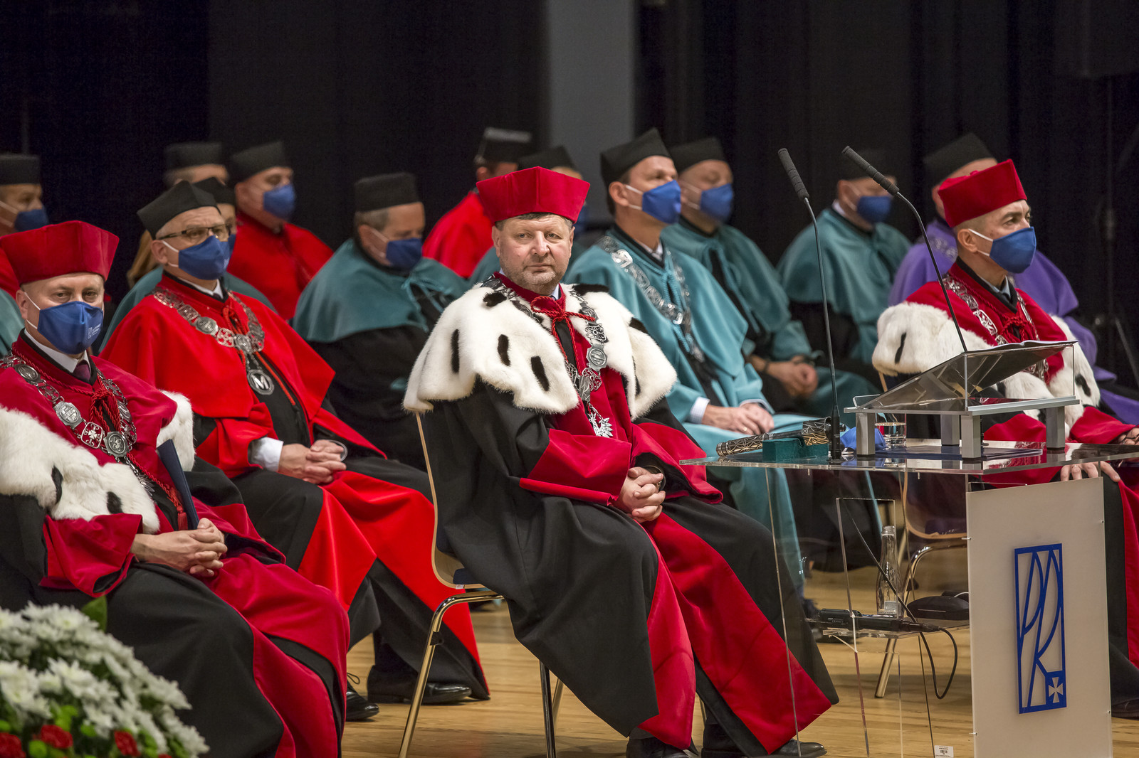 Ze względu na sytuację epidemiczną uroczystość inaugurująca jubileuszowy 70. rok akademicki na naszej uczelni odbyła się w warunkach zaostrzonego reżimu sanitarnego z zachowaniem wszelkich środków ostrożności. Pracownicy, studenci i sympatycy naszej uczelni mogli w niej uczestniczyć w relacji na żywo transmitowanej na kanale YouTube, uczelnianym Facebooku i na antenie Akademickiego Radia i Telewizji Centrum.