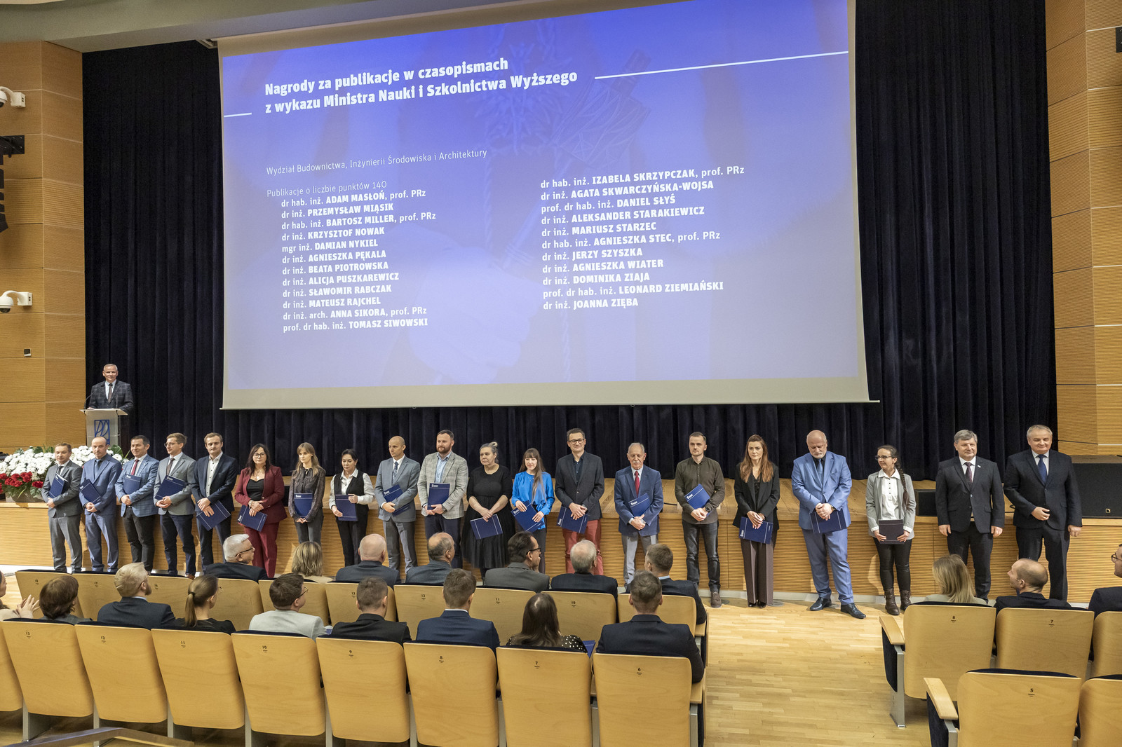 • z Wydziału Budownictwa, Inżynierii Środowiska i Architektury: dr hab. inż. Bernardeta Dębska, prof. PRz, dr inż. Andżelika Domoń, dr inż. arch. Joanna Figurska-Dudek, prof. dr hab. inż. Galyna Kalda, dr hab. inż. arch. Anna Martyka, prof. PRz, dr hab. inż. Adam Masłoń, prof. PRz, dr inż. Michał Musiał, prof. dr hab. inż. Dorota Papciak, dr inż. Beata Piotrowska, dr inż. Danuta Proszak-Miąsik, dr hab. inż. Agnieszka Stec, prof. PRz, dr inż. Grzegorz Straż, dr Monika Zdeb, dr inż. Jakub Żywiec,