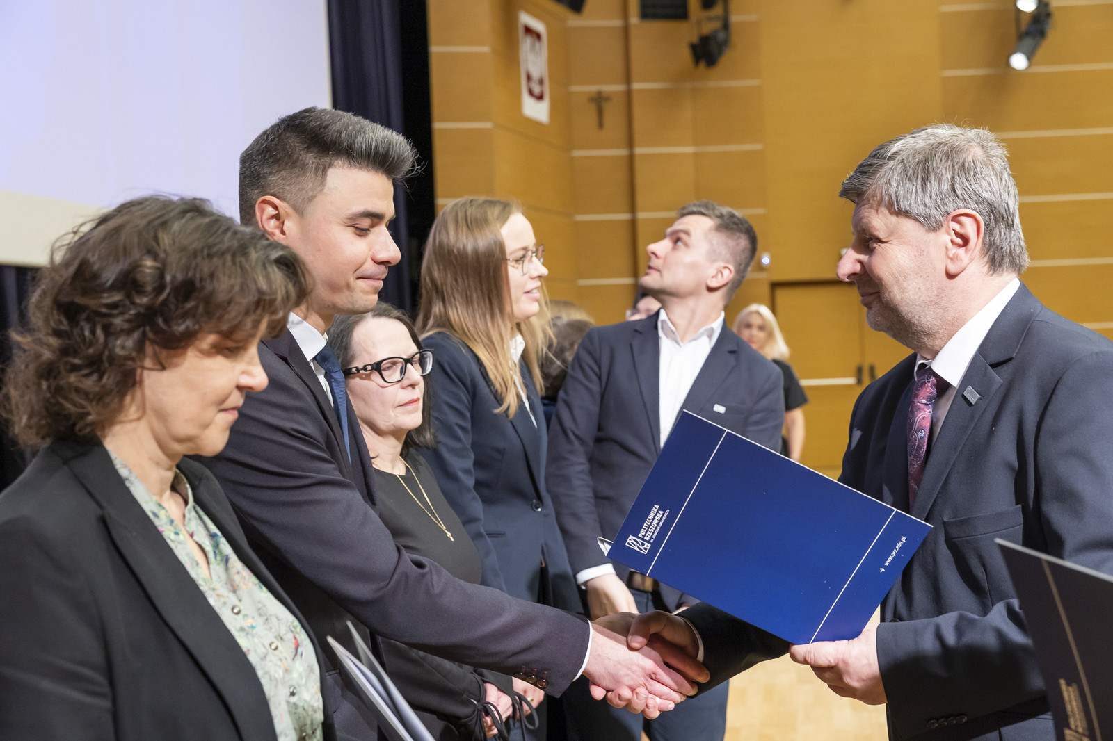 Uroczystość poprowadził prorektor ds. nauki dr hab. inż. Lesław Gniewek, prof. PRz. Dyplomy nagród wręczył rektor prof. dr hab. inż. Piotr Koszelnik. w towarzystwie dziekanów.